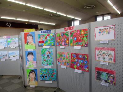 先週、鬼脇公民館にて、作品展がありました。学校からは、子どもたちが、図工や美術の時間に作成した絵画を出品しました。他にも一般の作品(陶芸、書道、絵画、写真、手芸)が展示してありました。どの作品も素晴らしく、思わず見入ってしまいました。作品を見ていると、出品した方と話をする機会があり、その方の作成した経緯や、思いなども聞くことができ、初めて見た感覚とは違う感覚で、その作品を見るようになりました。そして、もう一度子どもたちの作品を見ました。「どういう思いでこれを描いたのだろう。」とか、「なぜ、この色を使ったのだろう。」など、子どもたちが作成している場面を思い浮かべながら見ていました。たくさんの方が来場していて、保護者や地域の方に子どもたちの成長を伝える場となっており、うれしく思いました。