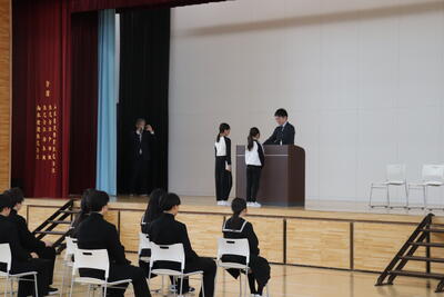 「学校生活を過ごしやすくするのは、みなさん一人一人です。ただ、一人だけではできません。みんなと力合わせをして、全校児童生徒のみんなが、楽しく過ごしやすくする学校を創り上げてください。」