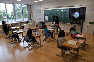 ▽別の小のクラスではALTの先生と英語の授業。耳で理解し、声を出すことが言語活動の始まりです。我々が学んだ昔の方法とは確実に違います。会話のできる英語が大事。みんな元気な声で意欲的に取り組んでいました。