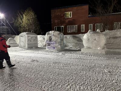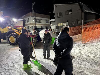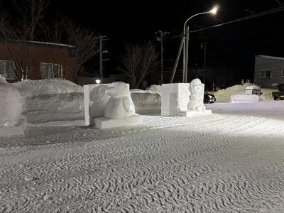 6日は、荒天により、臨休にしました。そして、7日に予定されていた「雪ん子広場」は、8日に延期になりました。雪がたくさん降り積もったので、7日の18:00に、実行委員会の人たちが集まって会場の雪をよける作業をしました。本番当日の8日は、途中で雪も降りましたが、たくさんのお客さんの来場がありました。また、児童生徒会企画のイベントもあって、大変盛り上がりました。長靴飛ばしなどの企画では、子どもたちの歓喜の声が会場にこだましていました。また、地域の方から「学校の先生方がたくさん来てくれているね。」とお褒めの言葉をいただき、うれしく思いました。実行委員会の方々のおかげで、今年も「雪ん子広場」が開催できたことに感謝申し上げます。ありがとうございました。