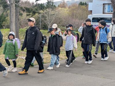 ここ数日天気が良い利尻富士町。まだまだ肌寒いですが、今日は集団下校訓練が行われました。